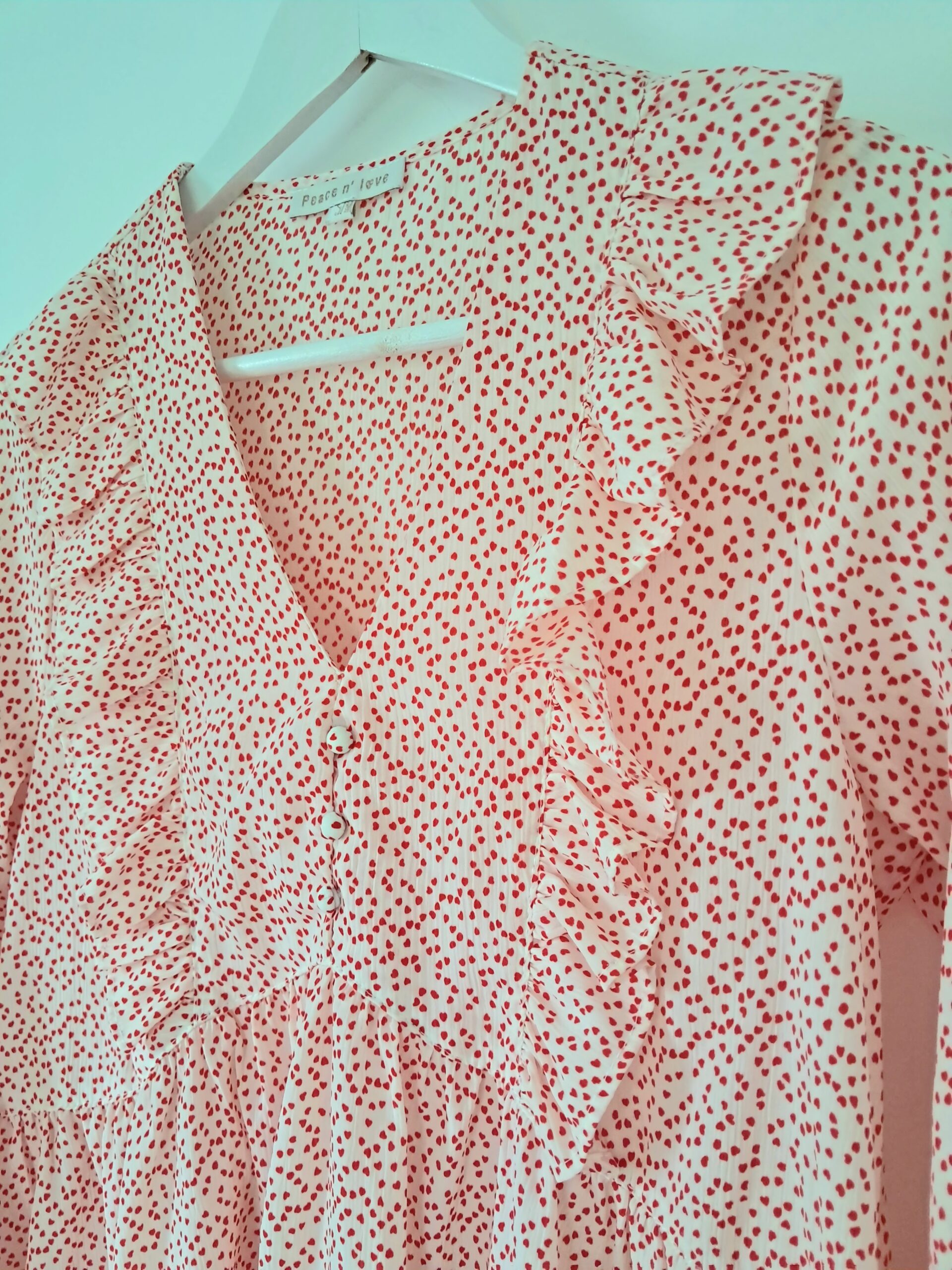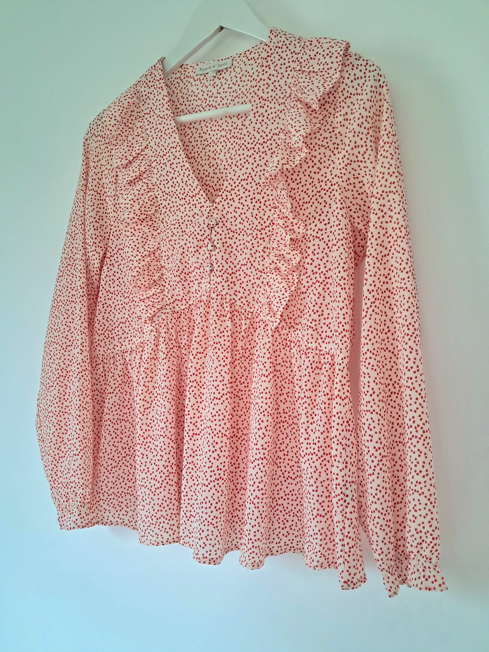 🤍 Féminine et charmante, cette blouse bohème à motifs cœurs séduit par son effet volanté léger et élégant 🤍