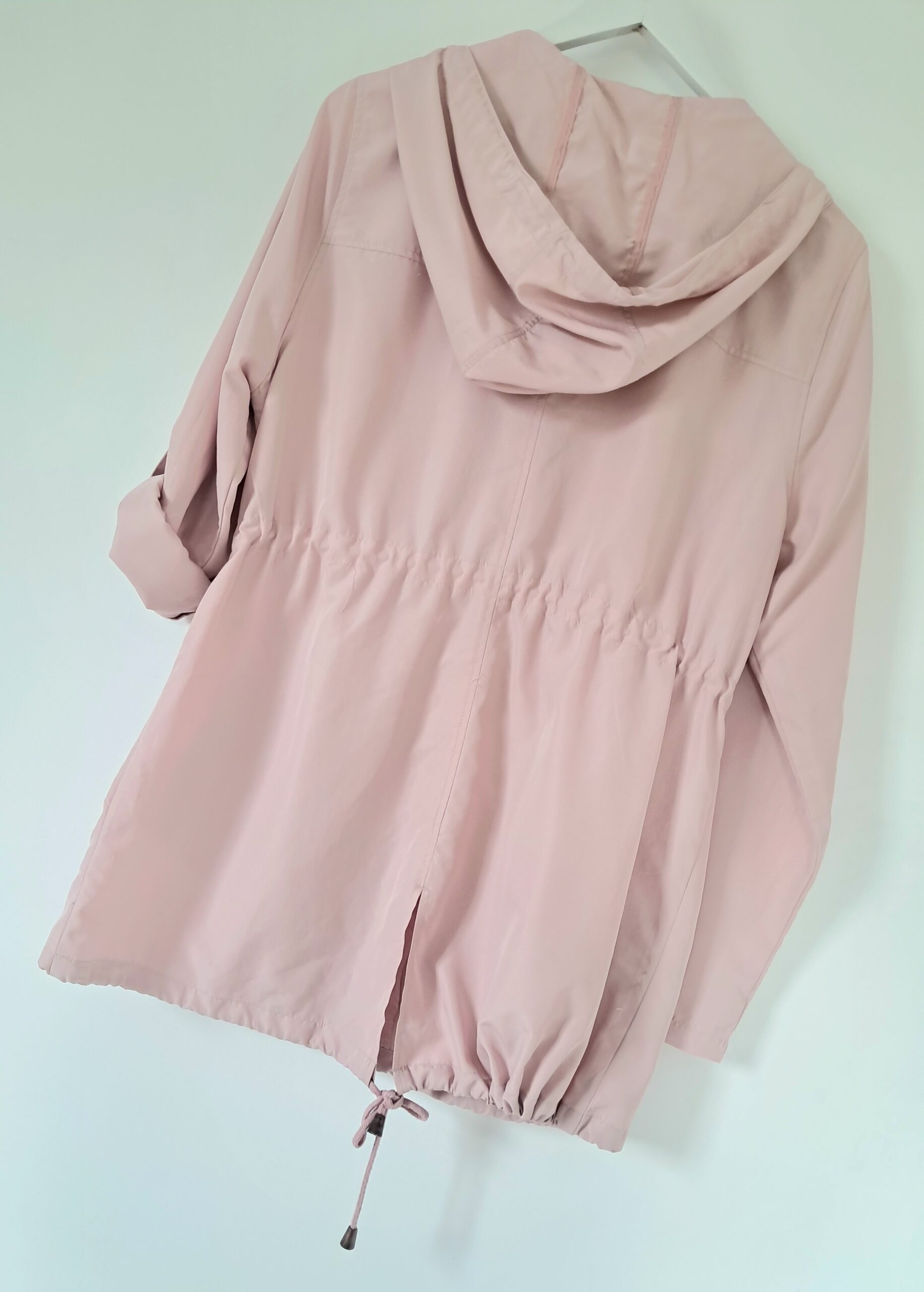 Tissu fluide et tombant, avec manches retroussables et tirette zippée pour plus de praticité.