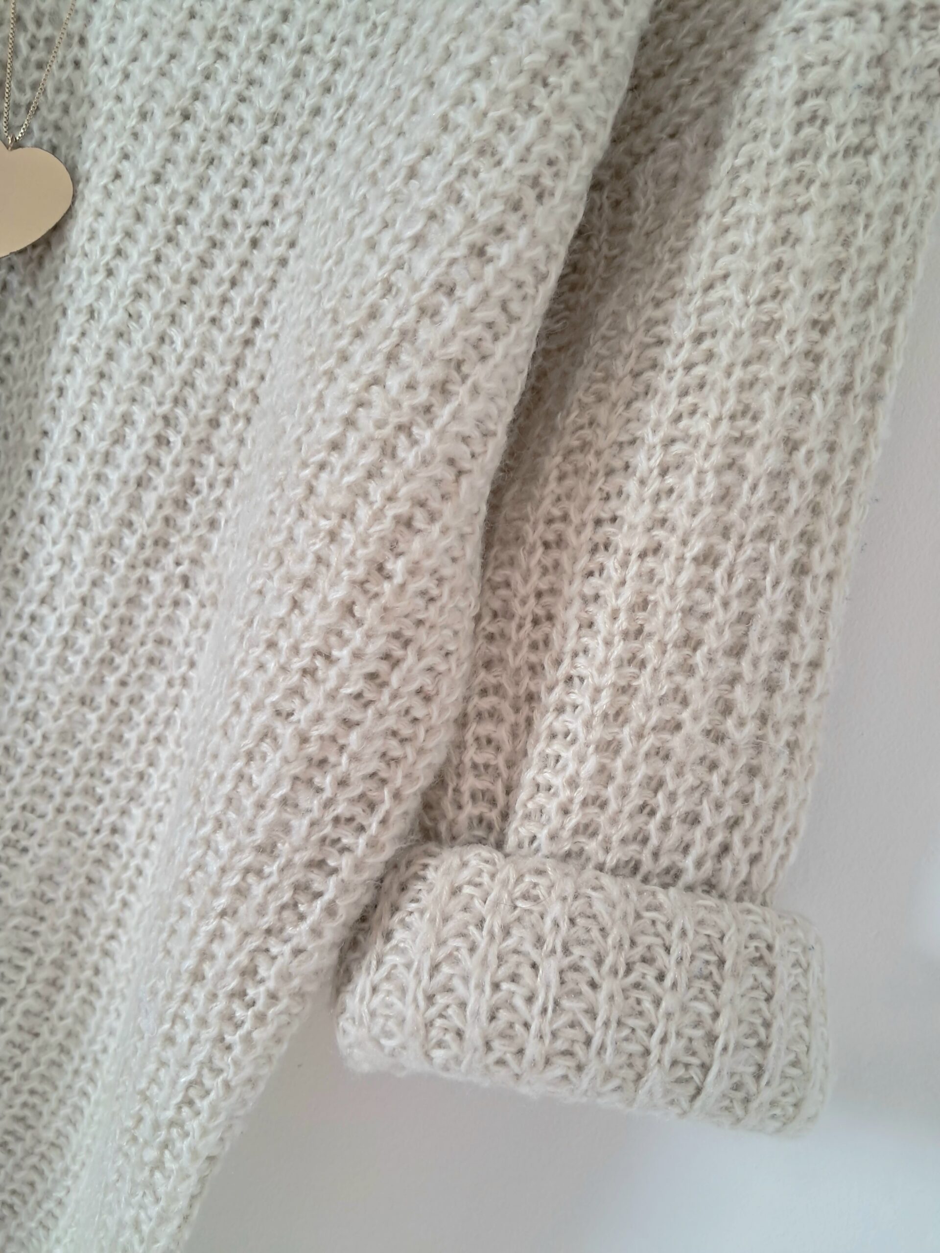 Maille douce et chaude, modèle ample et mi-long pour un confort optimal.