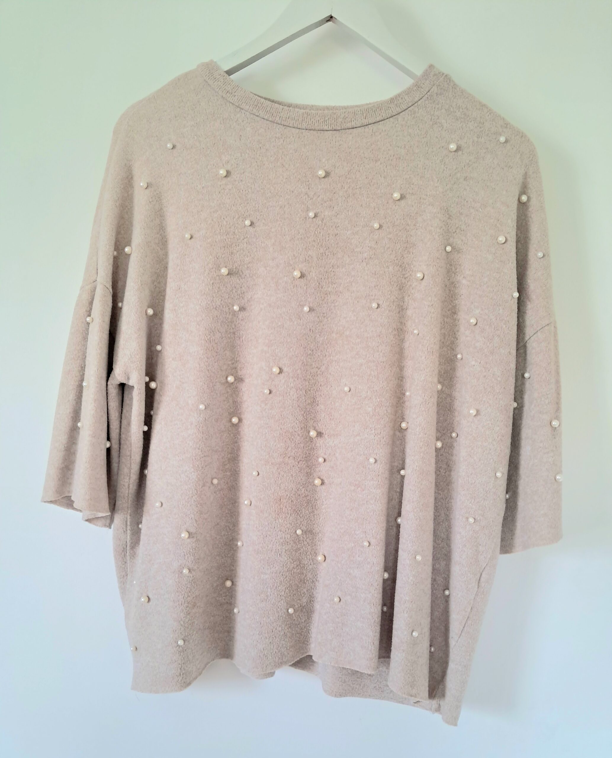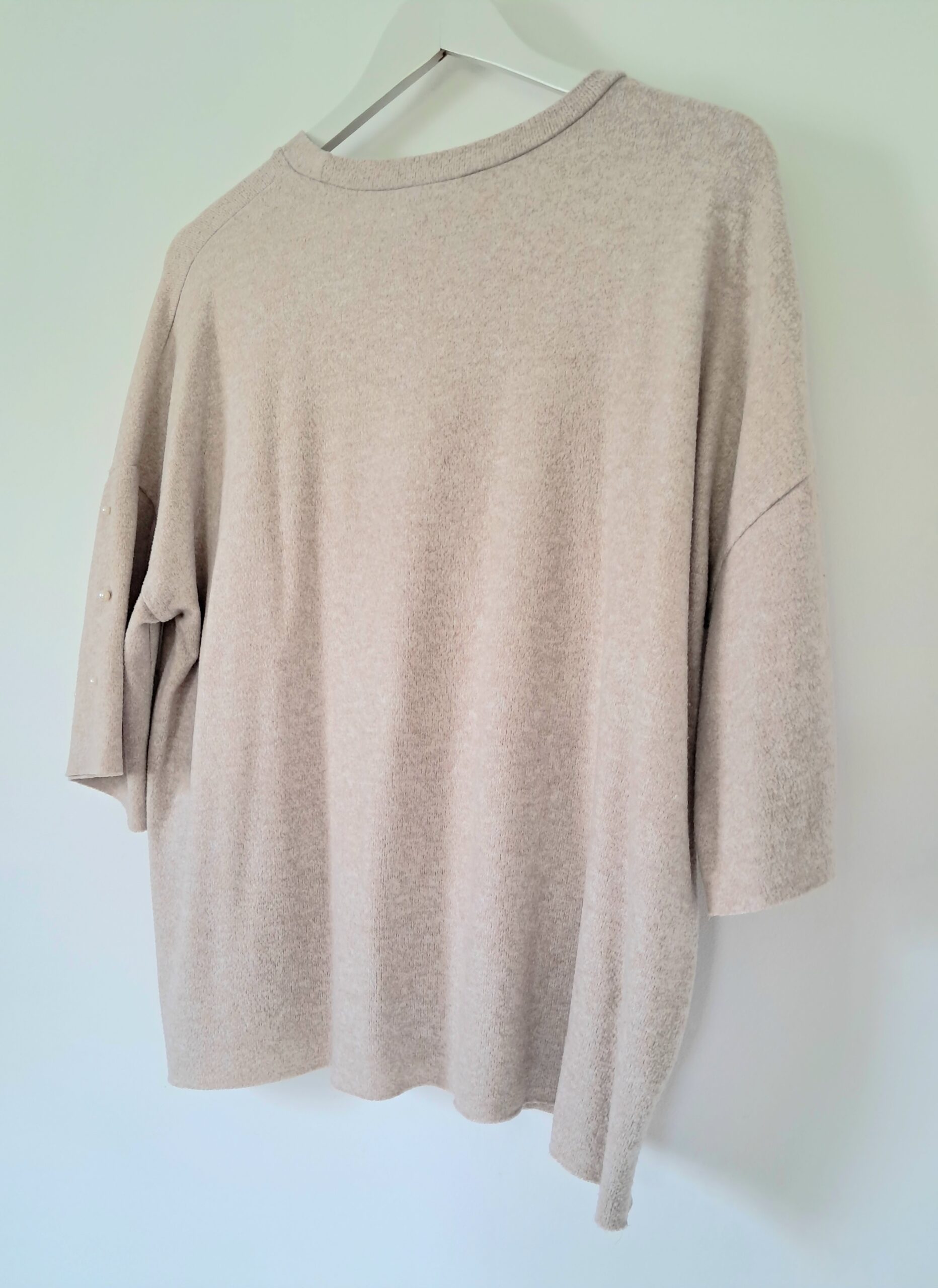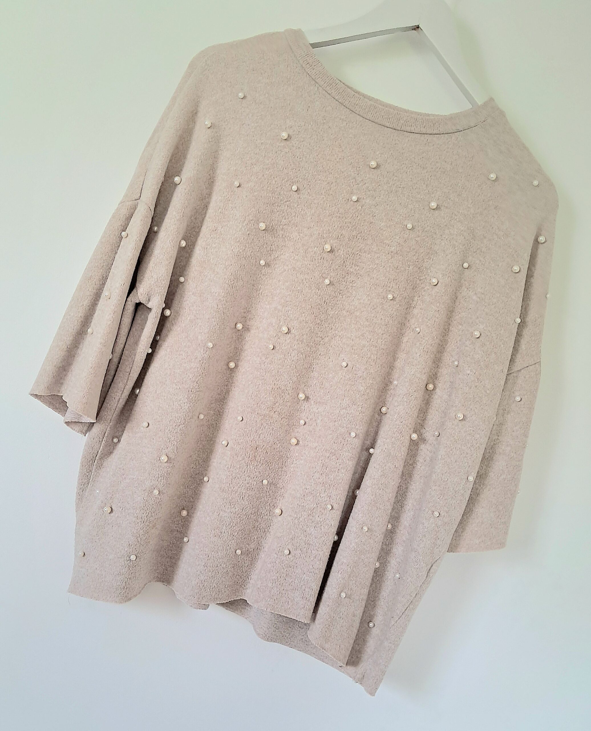 Le devant est subtilement orné d’un effet perlé qui apporte une touche d’élégance et de féminité. Ses manches amples et sa coupe légèrement loose rendent ce modèle ultra agréable à porter, pour un style chic et décontracté à la fois.