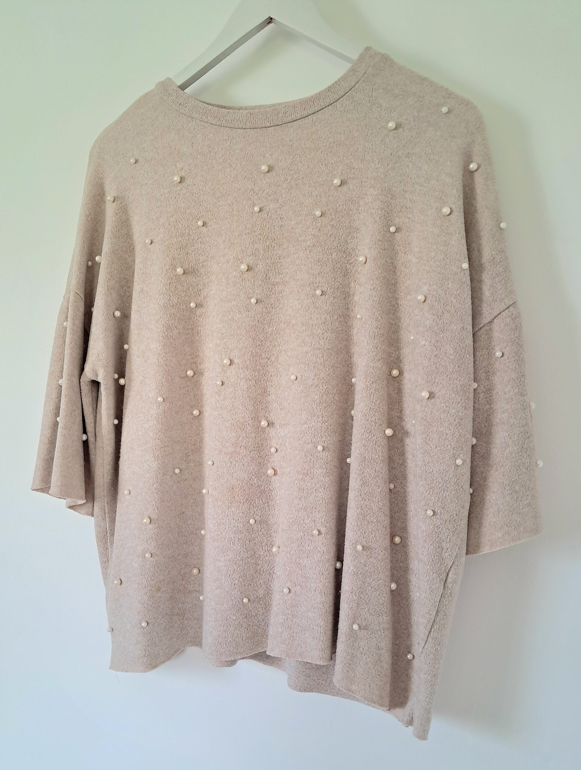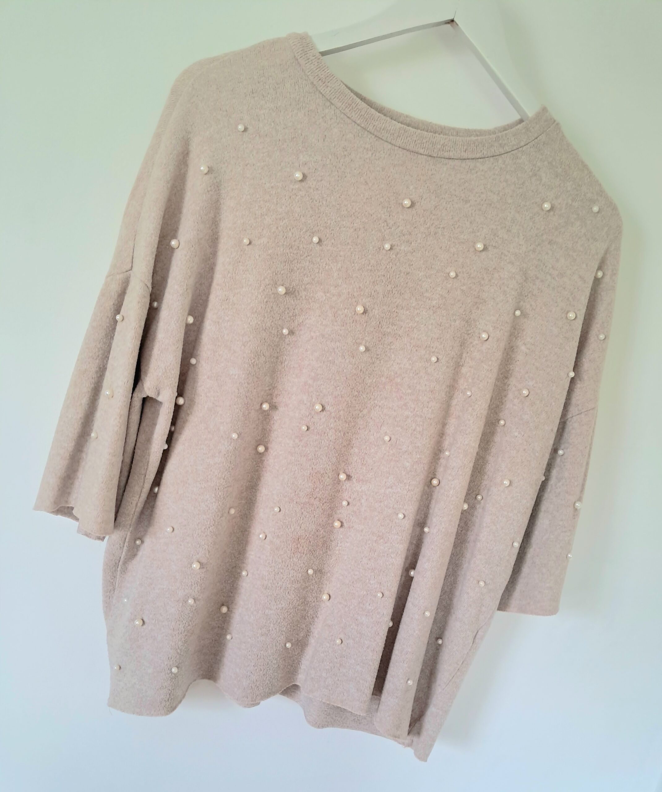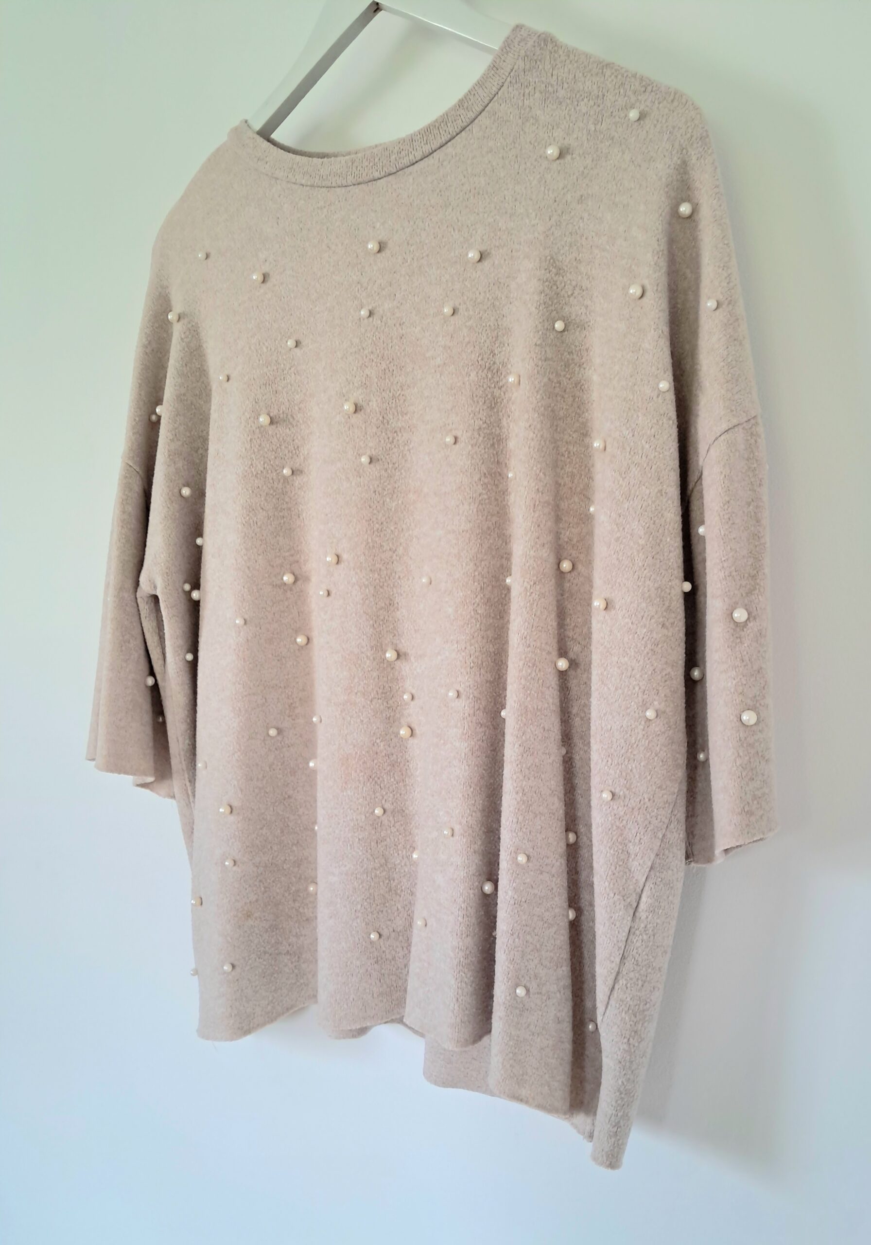 Le devant est subtilement orné d’un effet perlé qui apporte une touche d’élégance et de féminité. Ses manches amples et sa coupe légèrement loose rendent ce modèle ultra agréable à porter, pour un style chic et décontracté à la fois.