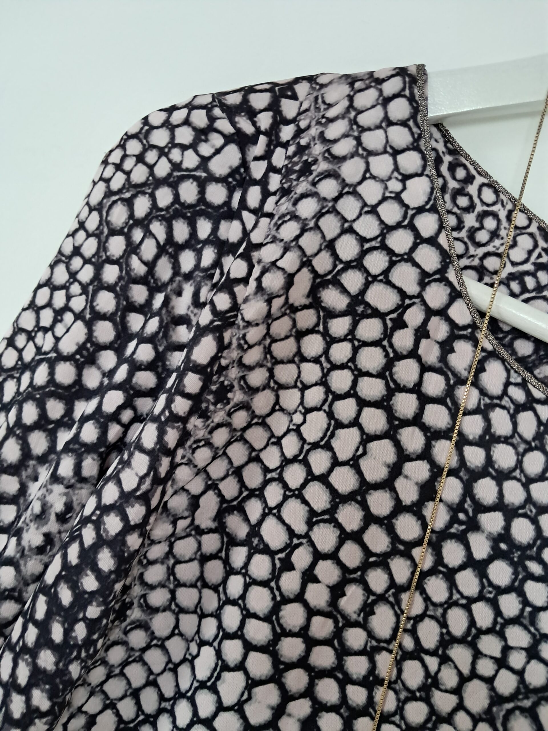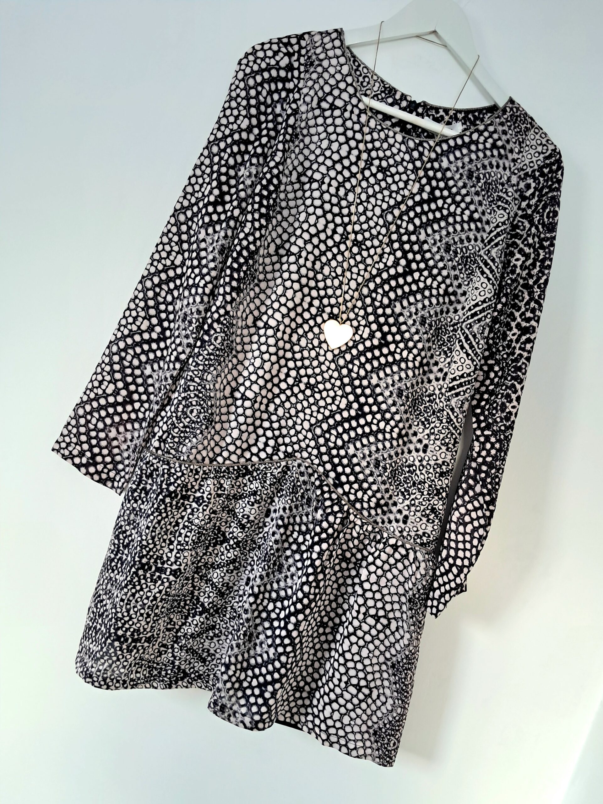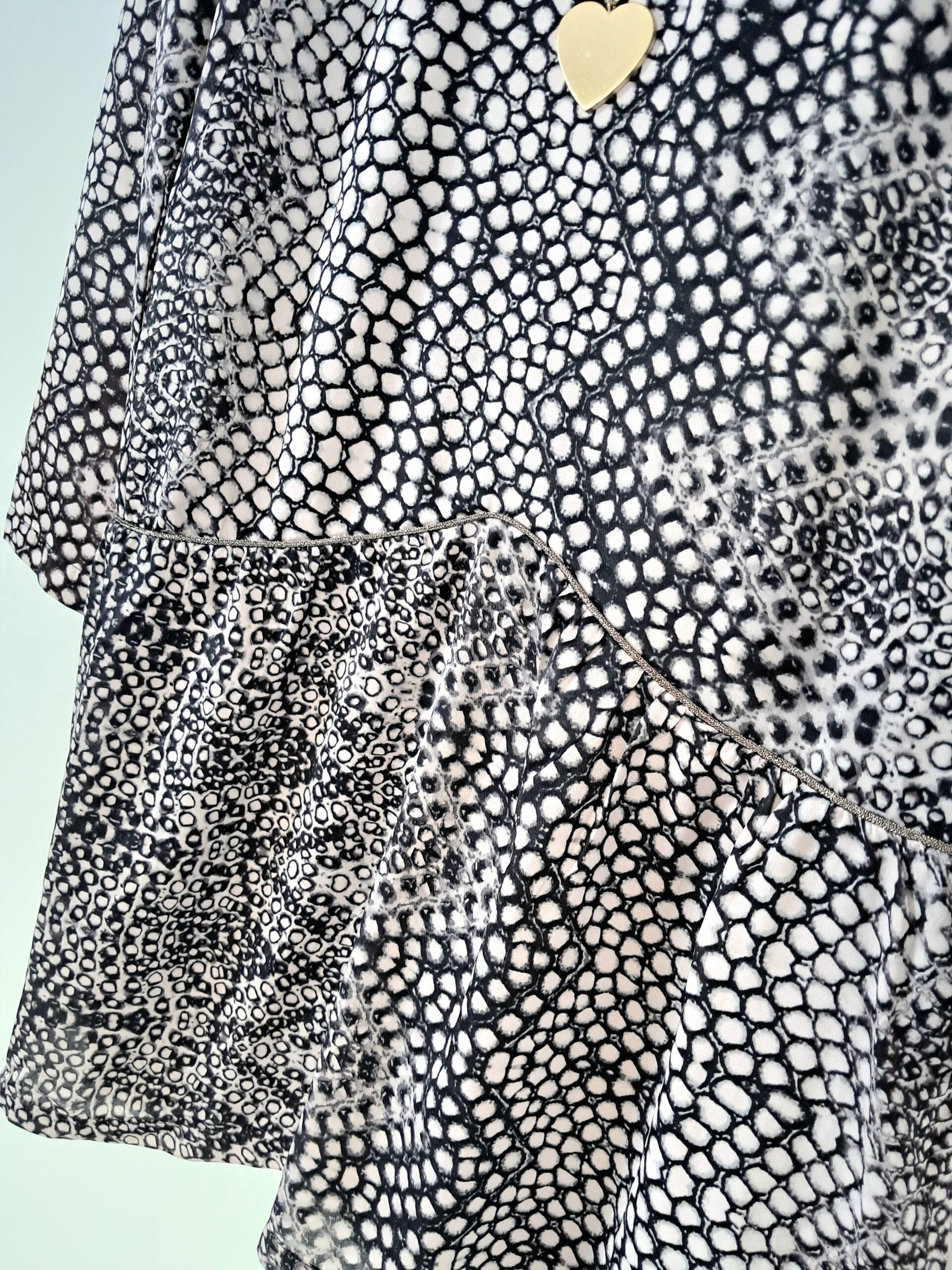 Tissu fluide et tombant, matière douce et soyeuse, joli effet volanté et tirette zip à l’arrière.