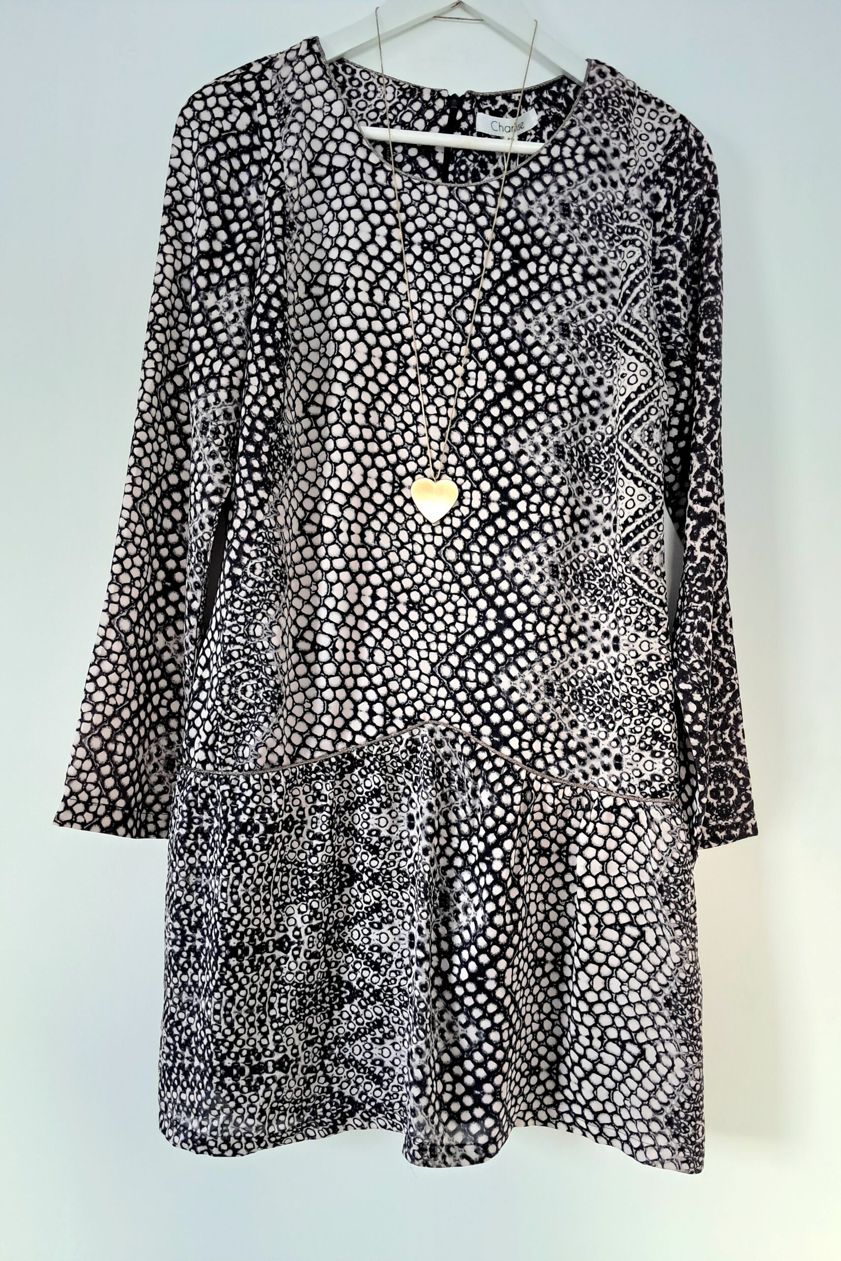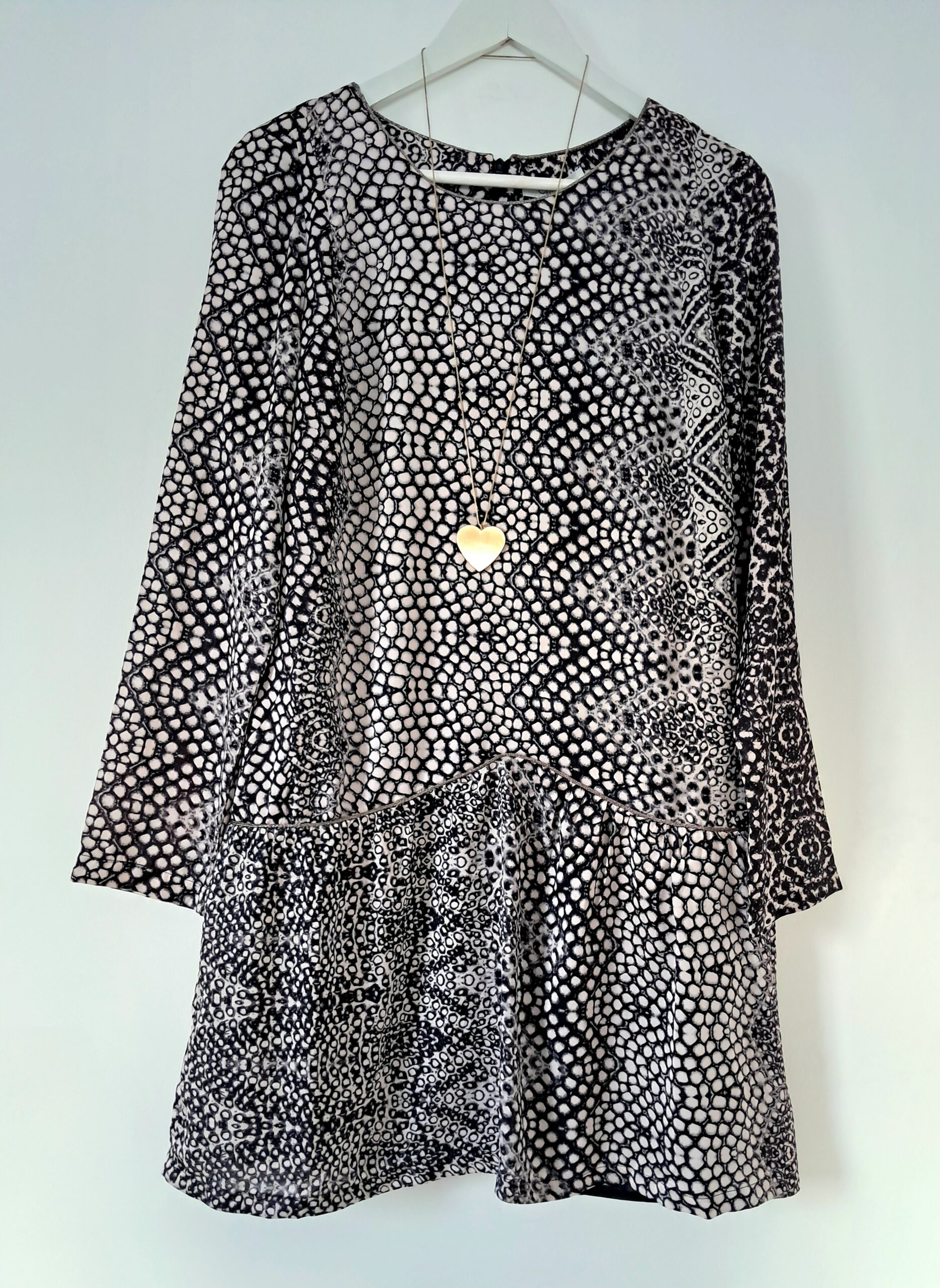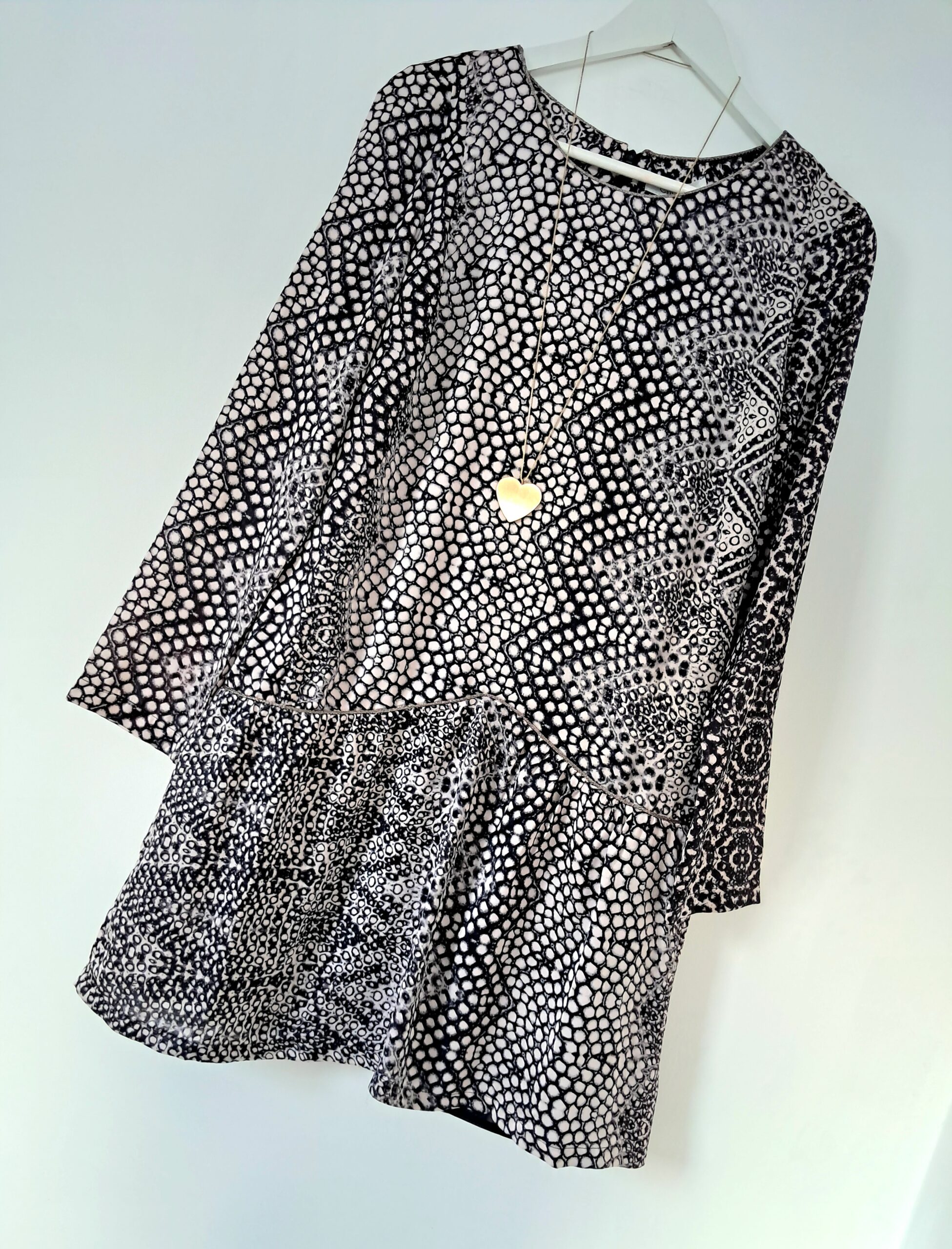 Tissu fluide et tombant, matière douce et soyeuse, joli effet volanté et tirette zip à l’arrière.