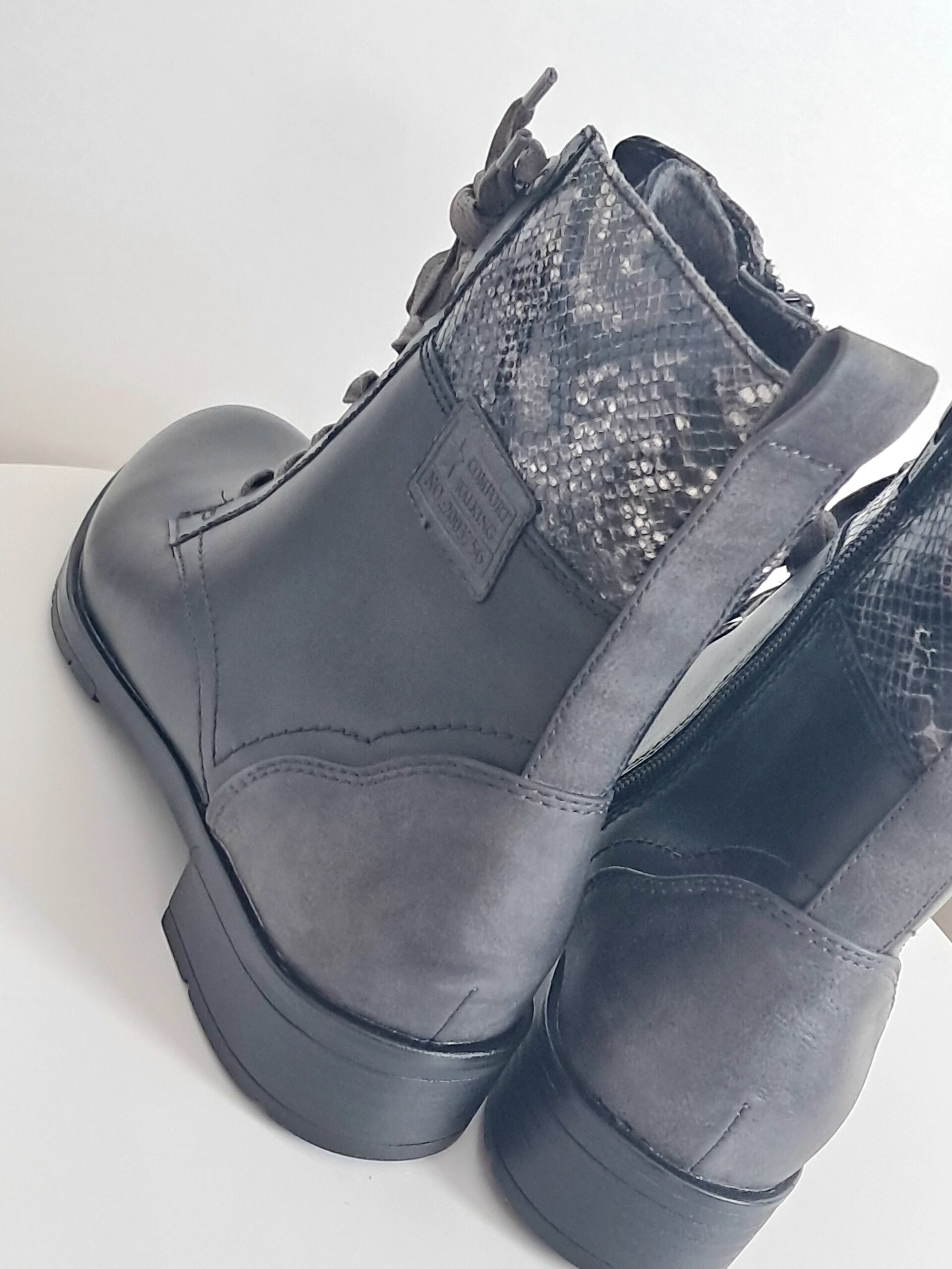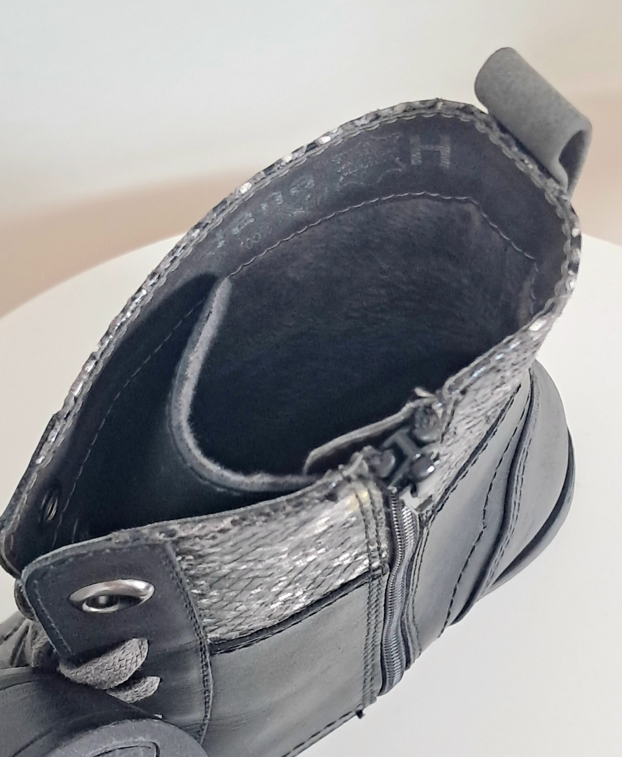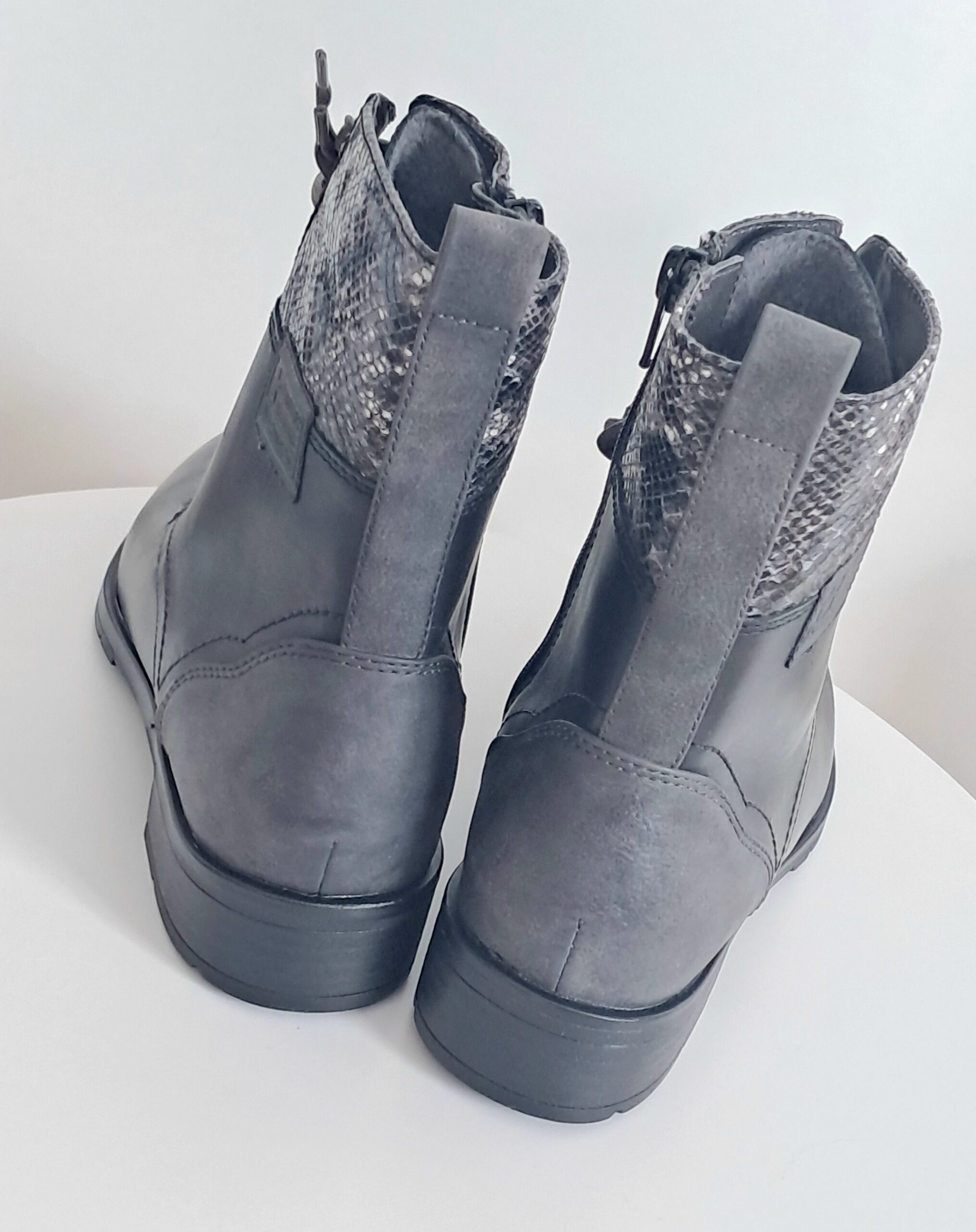 Entièrement en cuir, effet piton, fermeture zippée et semelles confort pour allier style et praticité.
