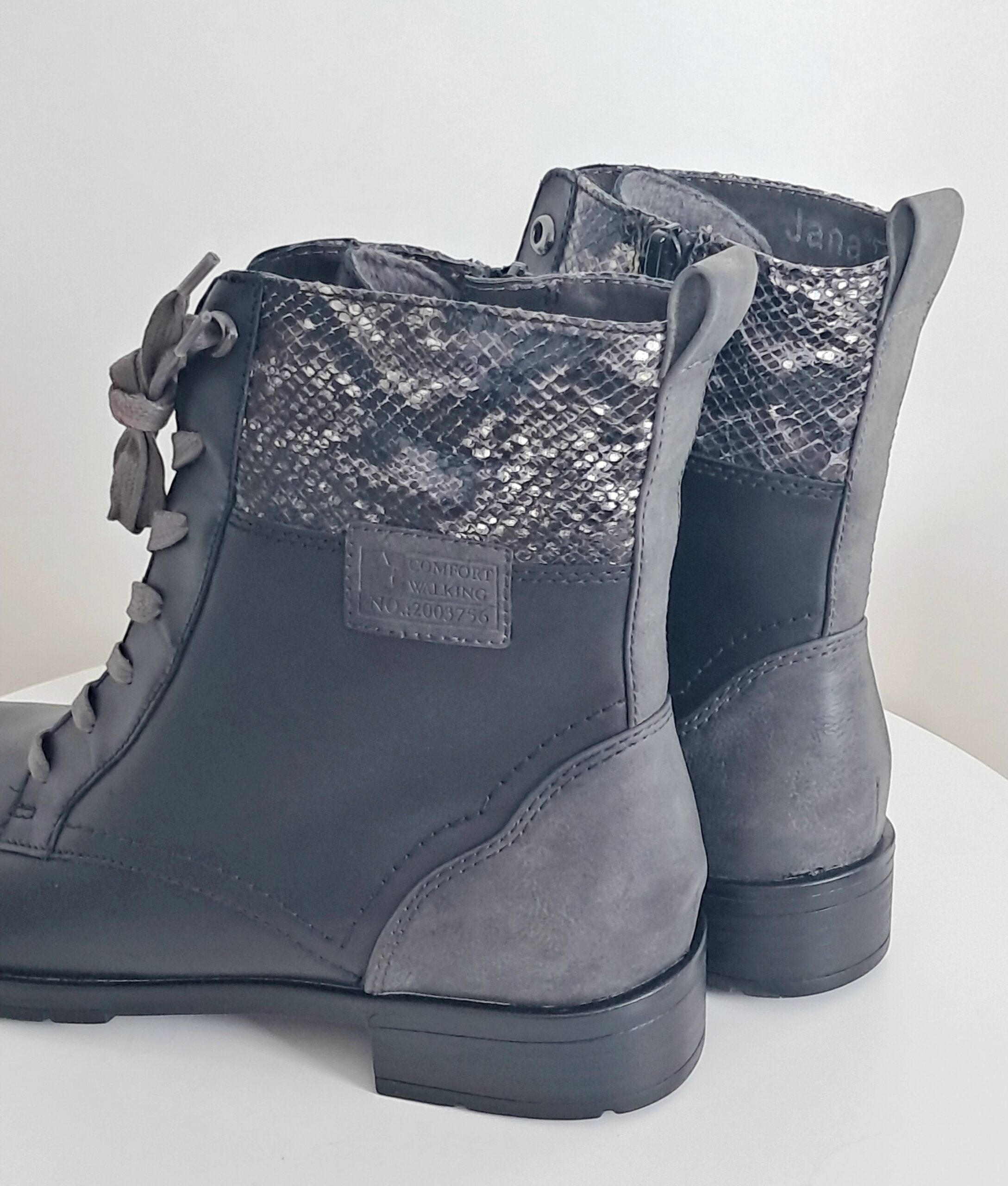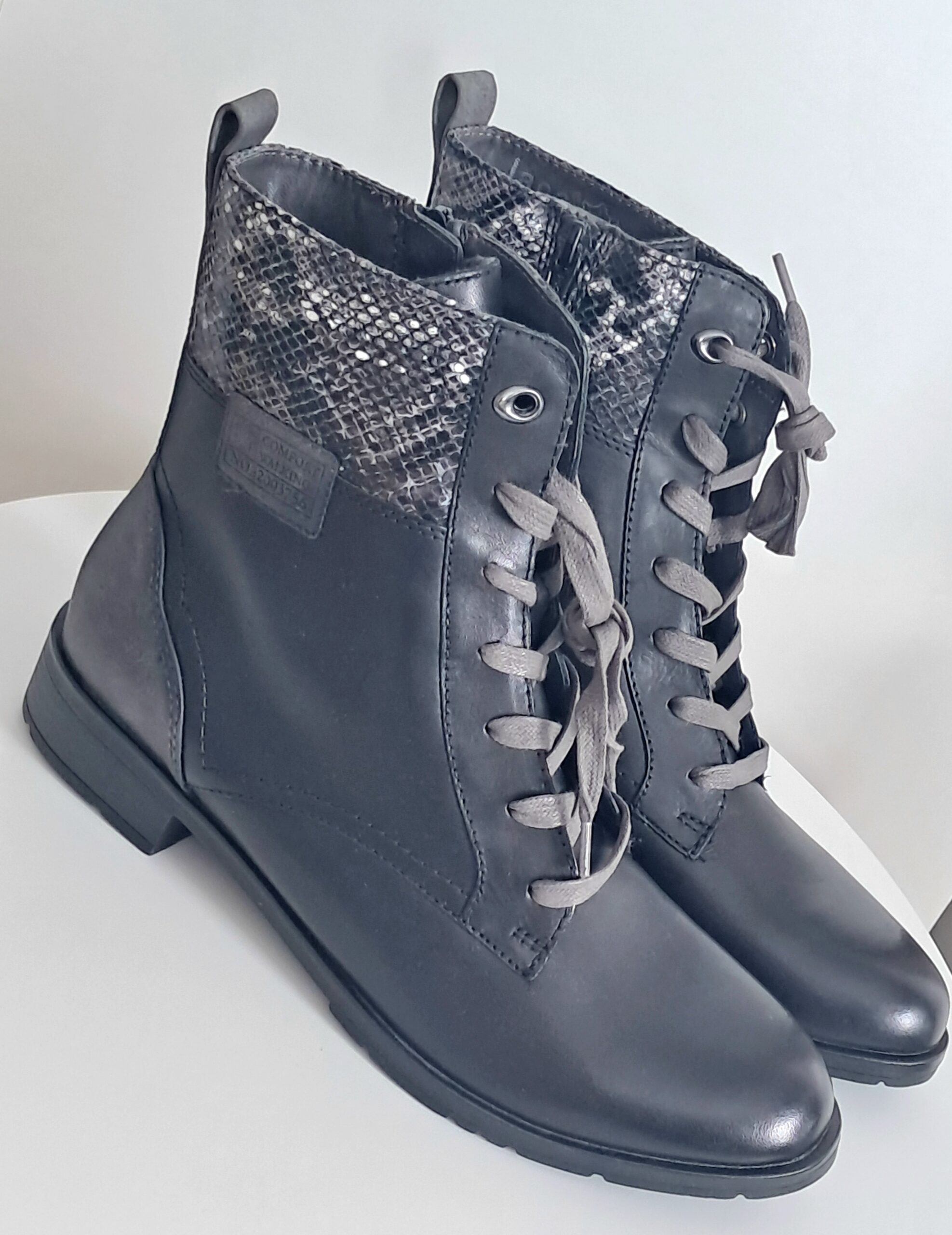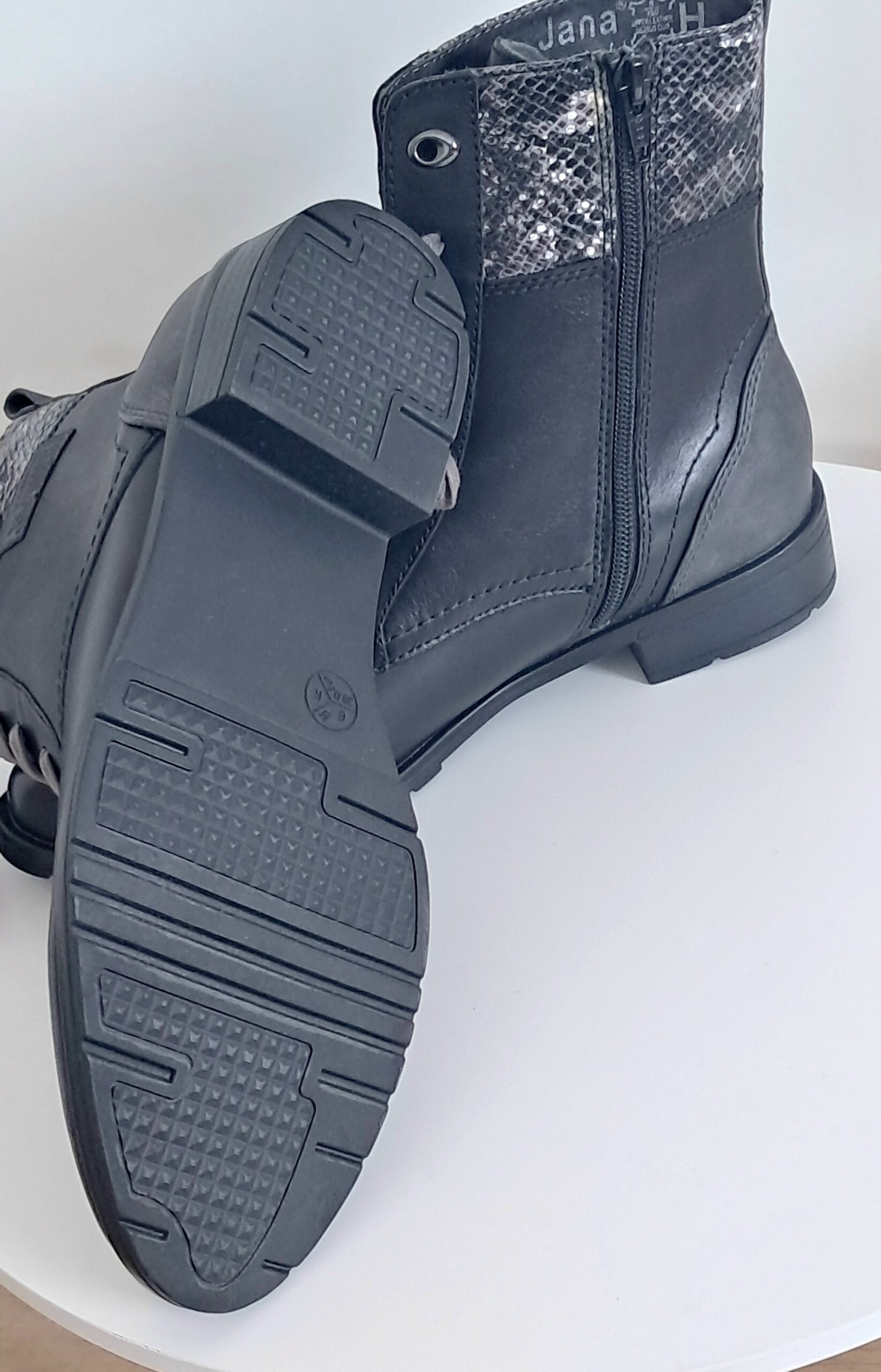 Entièrement en cuir, effet piton, fermeture zippée et semelles confort pour allier style et praticité.